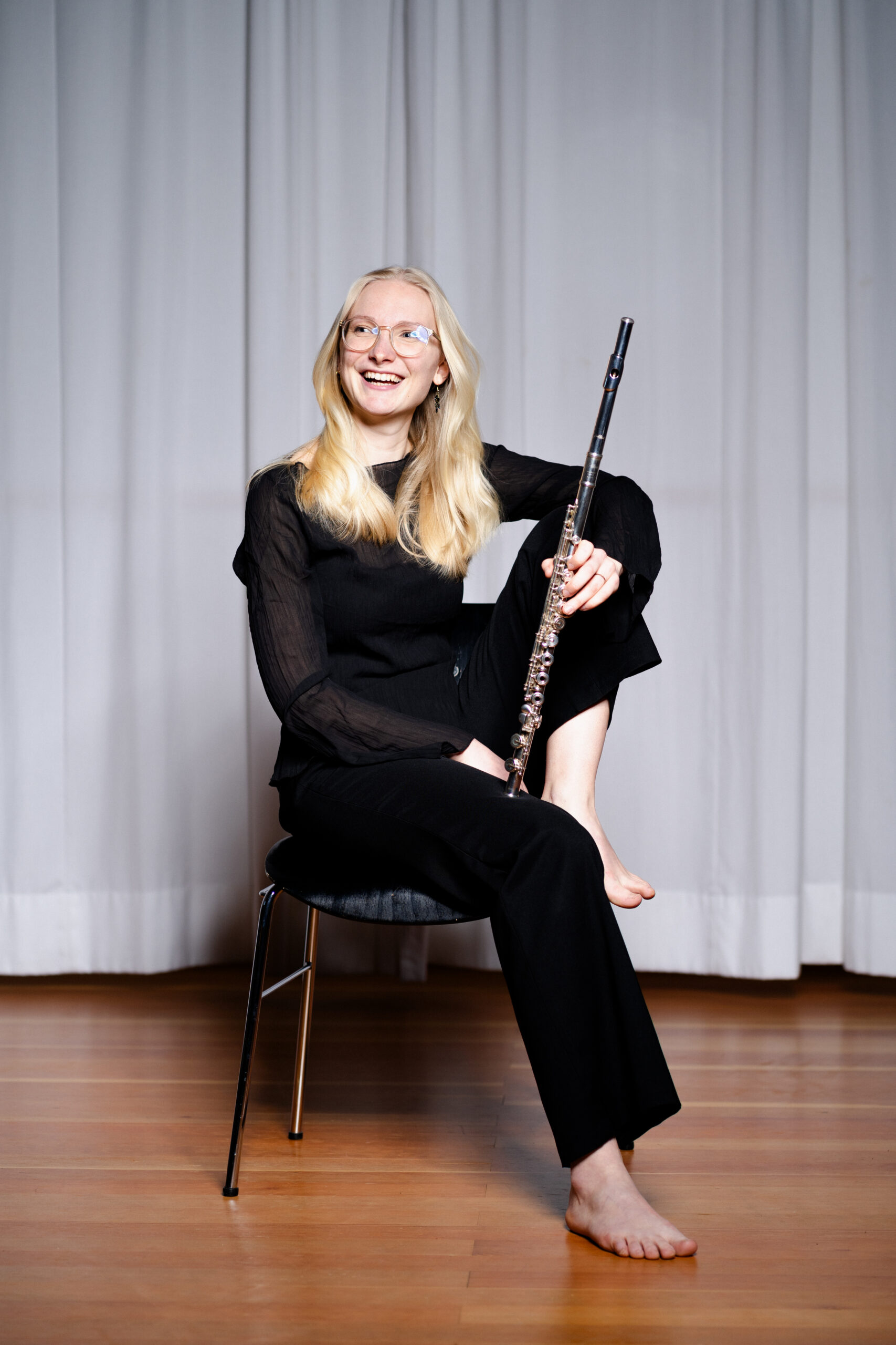 Ida Reimer (*2001 in Braunschweig) studiert seit Oktober 2020 Querflöte an der Hochschule für Musik Würzburg bei Prof. Stefan Albers. Sie spielte in Orchestern wie dem Landesjugendblasorchester Niedersachsen, dem internationalen Euregio Festival Orchestra, dem Staatsorchester Braunschweig, der Thüringen Philharmonie Gotha-Eisenach und dem Philharmonischen Orchester Würzburg. Zum fünfjährigen Jubiläum des Kinderklassik e.V. konzertierte sie solistisch mit dem Kammerorchester Braunschweig. Ida ist mehrfache Bundespreisträgerin von Jugend Musiziert und dem Jugend Musik Wettbewerb Braunschweig. Zuletzt gewann sie den 2. Preis beim internationalen Wettbewerb Flautiada (Mai 2024) und den 3. Preis beim internationalen Wettbewerb der Deutschen Gesellschaft für Flöte (September 2024). Künstlerische Impulse setzten u.a. Jelka Weber, Stephanie Winker, Emmanuel Pahud, Jacques Zoon, Paolo Taballione, Nathanael Carré und Renate Greiss-Armin.