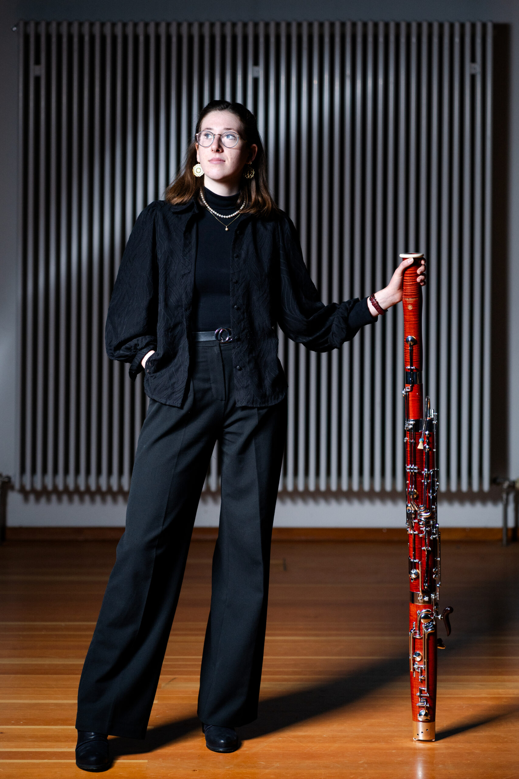 Emma Magdalena Wiese (*2004 in Freiburg im Breisgau) begann ihre musikalische Ausbildung mit fünf Jahren auf der Blockflöte, zuletzt 2023 bei Isabel Lehmann. Von 2014 bis 2023 erhielt sie Fagottunterricht bei Annette Winker in Freiburg und von 2021 bis 2023 auf dem Barockfagott bei Eckhardt Lenzing. Seit Oktober 2023 studiert Emma Fagott bei Prof. Albrecht Holder an der Hochschule für Musik Würzburg. Sie ist Mitglied der Landesjugendkantorei Baden, regelmäßige Teilnehmerin am Kammermusikkurs der Jeunesses Musicales in Weikersheim, absolvierte verschiedene Meisterkurse und war 2023 und 2024 beim Isny Opernfestival aktiv. Außerdem nahm sie an verschiedenen Orchesterprojekten teil, unter anderem mit dem Landesjugendorchester Baden-Württemberg, dem Concerto Armonico Freiburg und der Jungen Sinfonie Berlin. Zuletzt gastierte sie im Eröffnungskonzert der Ludwigsburger Schlossfestspiele.
