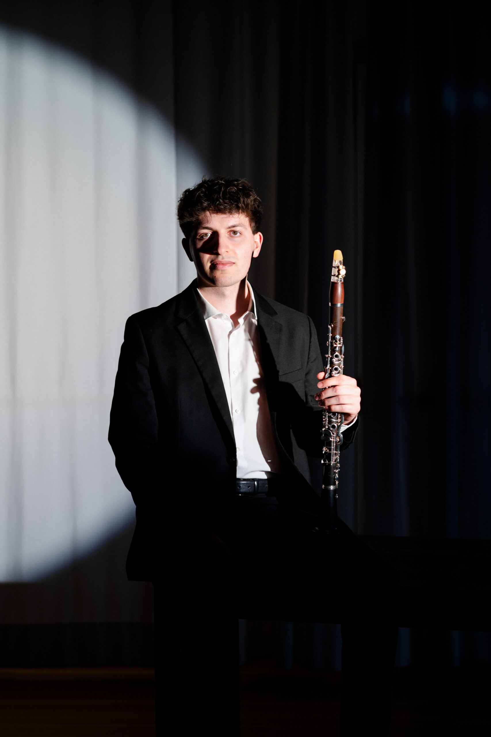 Jonas Kalin (*2004 in Sonthofen im Allgäu) nahm im Alter von acht Jahren seinen ersten Klarinettenunterricht bei Nikolai Paskal. Später brachte er sich autodidaktisch das Klavier- und Orgelspiel bei. Jonas war Mitglied im Schwäbischen Jugendsinfonieorchester sowie im Bayerischen Landesjugendorchester und spielte bereits unter namhaften Dirigenten, wie Sir Simon Rattle, Joseph Bastian oder Vitali Alekseenok. In Meisterkursen bei Prof. Norbert Kaiser, Prof. Thomas Lindhorst und Prof. Harald Harrer holte er sich weitere musikalische Impulse. Im Oktober 2023 begann Jonas Kalin sein Studium an der Hochschule für Musik Würzburg zunächst bei Andreas Freitag und seit Oktober 2024 bei Prof. Manfred Lindner. Er spielte bereits in verschiedenen Orchestern, wie der Thüringen Philharmonie Gotha-Eisenach.