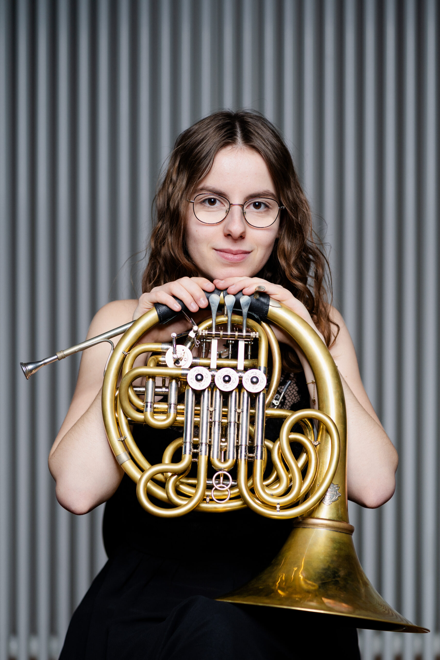 Marit Burkhardt (*2003 in Ulm) erlernte das Hornspielen im Alter von acht Jahren, zuletzt bei Adriano Orlandi in Ulm. Sie schloss bereits in jungen Jahren verschiedene Instrumentalprüfungen und Leistungsabzeichen mit Bestnoten ab. Nach ihrem Abitur besuchte sie ein Jahr lang die Berufsfachschule für Musik des Bezirks Schwaben, wo sie bei Katharina Hauf Hornunterricht erhielt. Außerdem sammelte sie dort Erfahrung in verschiedenen kammermusikalischen Ensembles. Auch durch Unterricht in Dirigat und Ensembleleitung erhielt sie wertvolle Impulse für ihr heutiges Ensemblespiel. Orchestererfahrung konnte sie im Schwäbischen Jugendblasorchester, dem Schwäbischen Jugendsinfonieorchester sowie bei Hochschulorchesterprojekten und diversen weiteren Orchestern als Aushilfe sammeln. Seit Oktober 2023 studiert sie an der Hochschule für Musik Würzburg im künstlerisch-pädagogischen Studiengang bei Fabian Borchers und Prof. Christoph Eß.